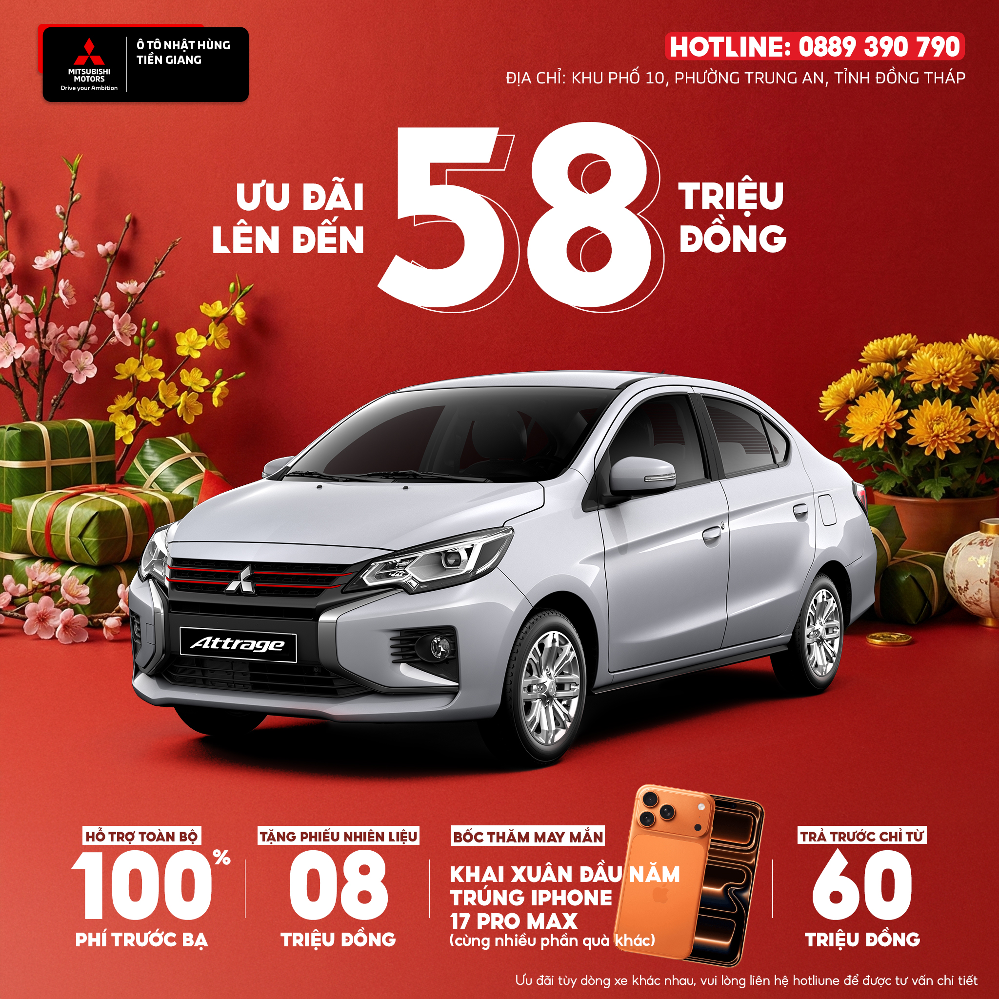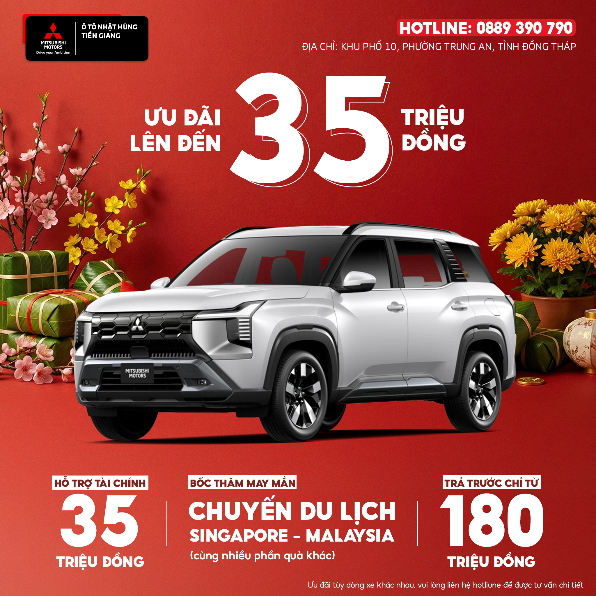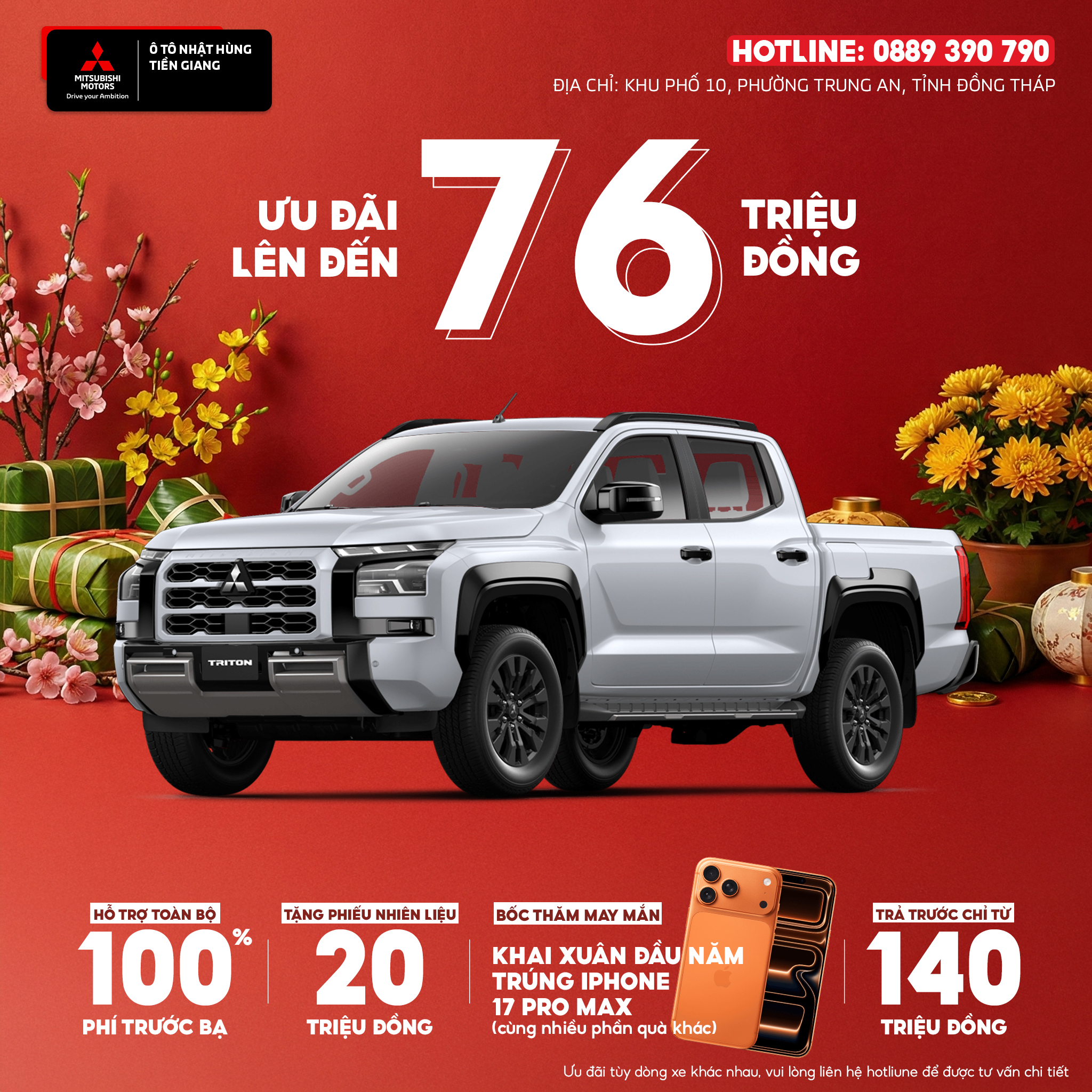 Mùa xuân là thời khắc của khởi đầu mới và những lựa chọn xứng tầm. Dịp Tết này, Mitsubishi Tiền Giang mang đến chương trình ưu đãi đặc biệt, giúp Quý khách sở hữu xe mới một cách trọn vẹn và an tâm.